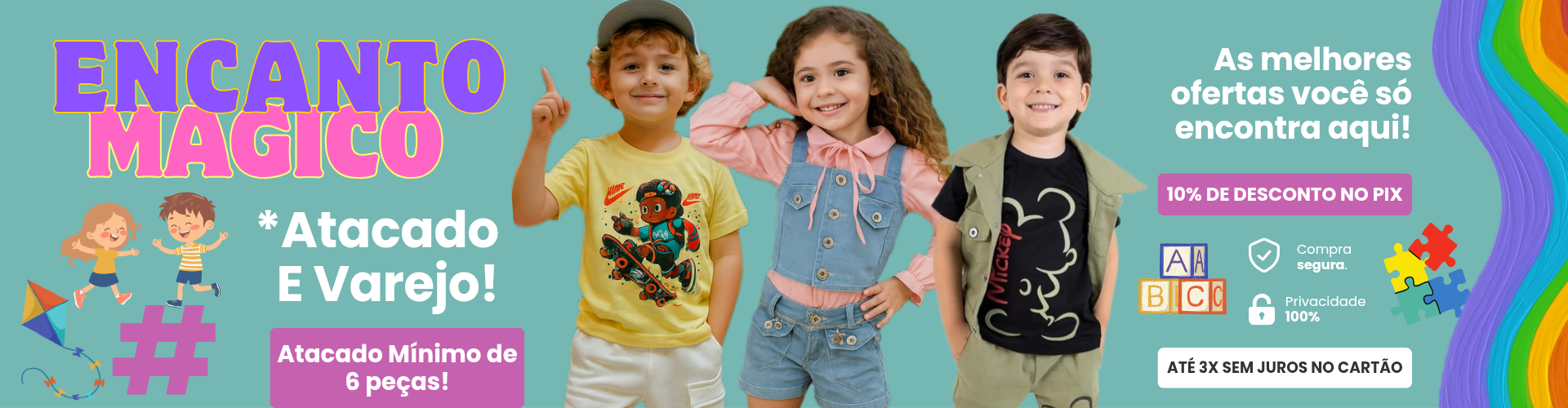 Nossa loja oferece uma variedade de roupas para crianças e adolescentes, sempre alinhadas com as últimas tendências da moda e desenvolvidas com materiais de alta qualidade que garantem o bem-estar e a liberdade de movimento dos pequenos. Na Kids Store, vestir bem os seus filhos é simples, divertido e acessível. Aproveite e descubra um novo jeito de fazer compras para o público infantil e juvenil com muito mais estilo.